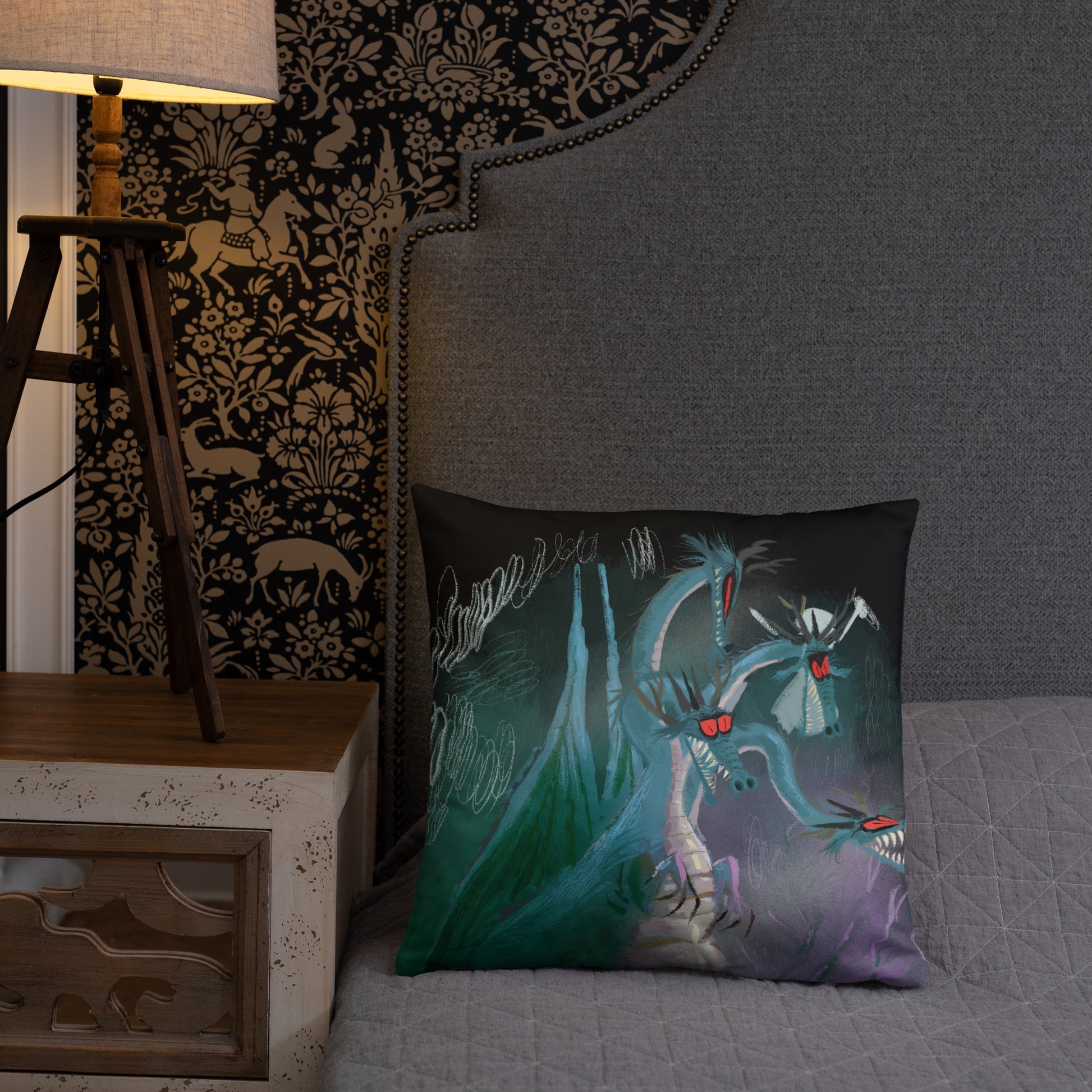 "Dragon Square Pillow - Hand-Drawn Illustration by Leo Matsuda | Fantasy Art Home Decor"
