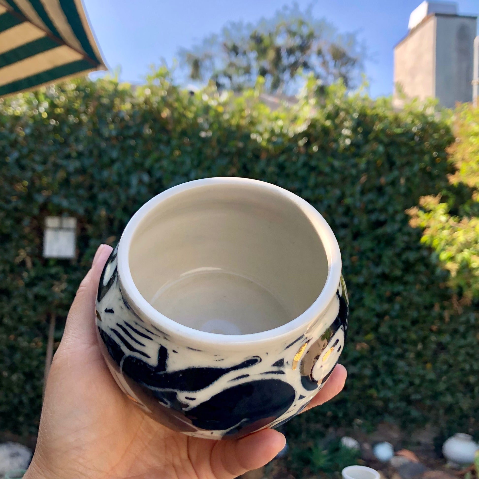 "Infused with joyful energy, this hand-carved porcelain art piece from Moon Pottery features a whimsical dancing figure that radiates happiness and movement. Carefully crafted with delicate precision, the design captures a sense of freedom and joy, making it a truly unique decorative piece. The smooth porcelain and fine carving techniques highlight the artist’s attention to detail, creating an item that brings warmth and a playful spirit to any room. Handmade by a local artist in Los Angeles, it’s a perfect gift for anyone who loves artistic decor with a happy, uplifting vibe."