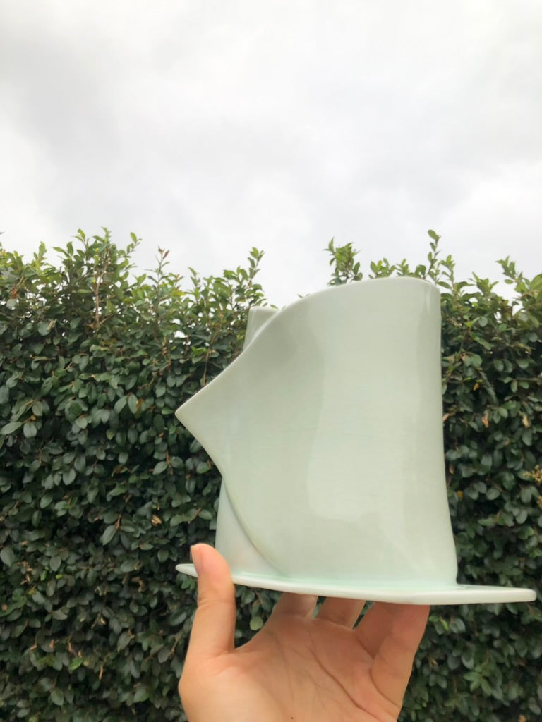 Inspired by the art of pastry making, this delicate handmade porcelain sculpture captures the soft, elegant curves of a croissant in a beautifully refined form. Each piece is meticulously crafted to evoke the sweetness and gentle nature of the baking process, offering a unique fusion of art and culinary inspiration. Handmade by Moon Pottery, this sculpture brings the charm and warmth of artisanal craftsmanship to your home, perfect for lovers of both art and baking.