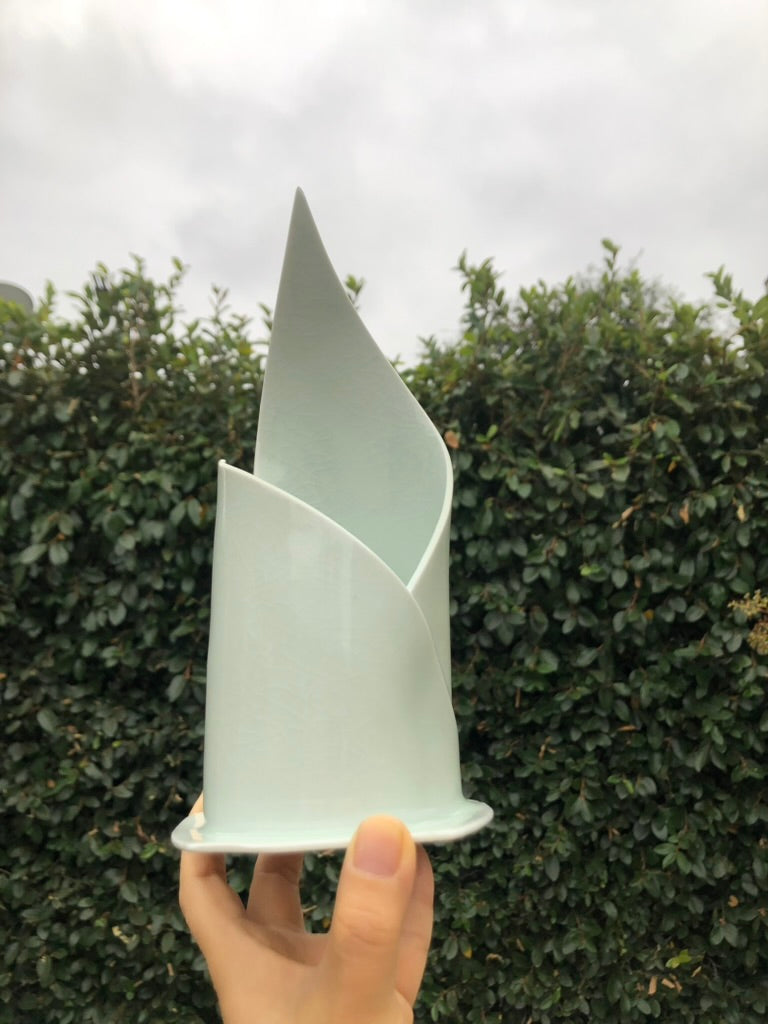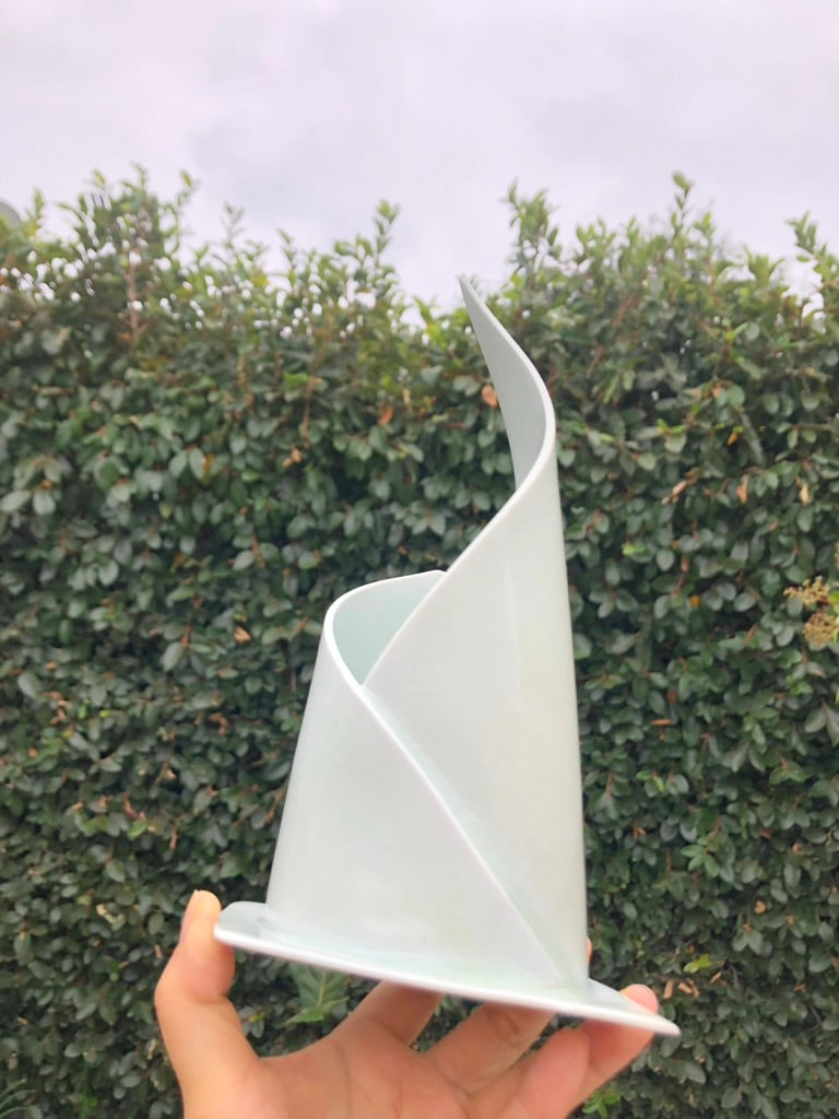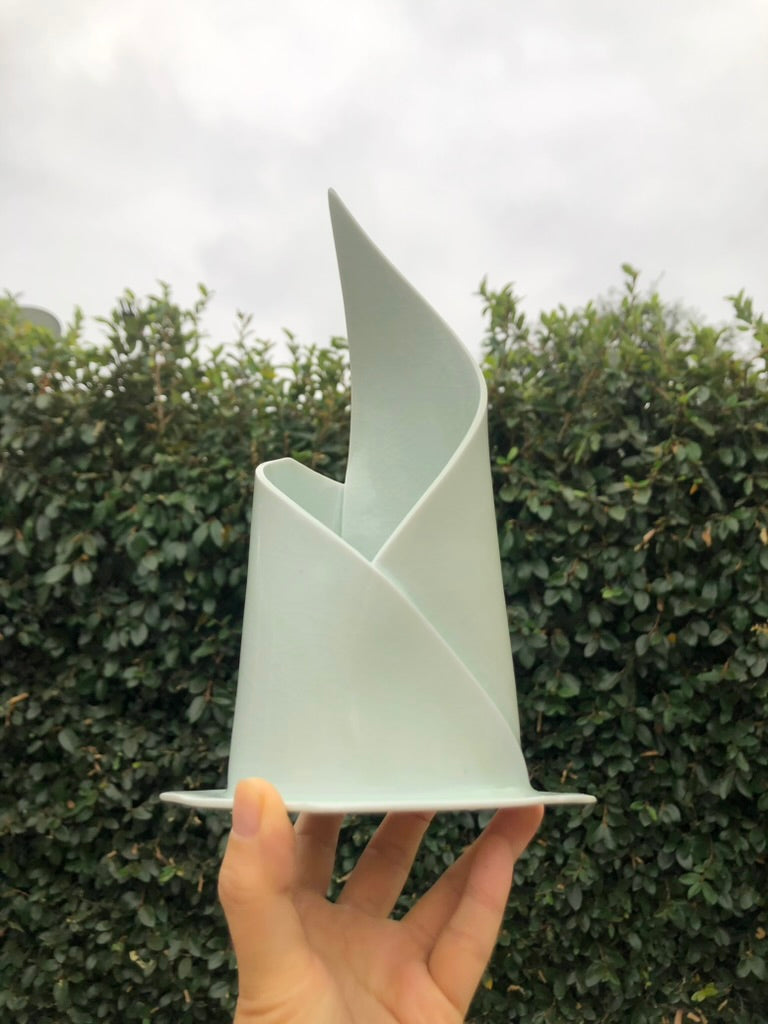 Inspired by the art of pastry making, this delicate handmade porcelain sculpture captures the soft, elegant curves of a croissant in a beautifully refined form. Each piece is meticulously crafted to evoke the sweetness and gentle nature of the baking process, offering a unique fusion of art and culinary inspiration. Handmade by Moon Pottery, this sculpture brings the charm and warmth of artisanal craftsmanship to your home, perfect for lovers of both art and baking.