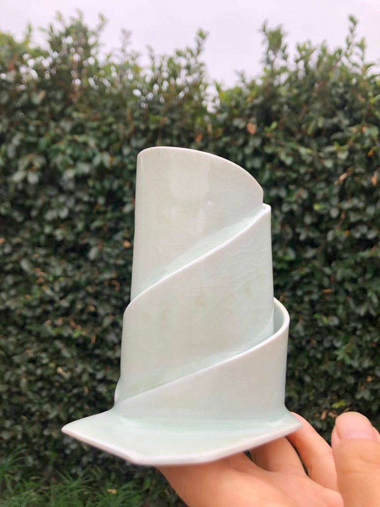 Inspired by the art of pastry making, this delicate handmade porcelain sculpture captures the soft, elegant curves of a croissant in a beautifully refined form. Each piece is meticulously crafted to evoke the sweetness and gentle nature of the baking process, offering a unique fusion of art and culinary inspiration. Handmade by Moon Pottery, this sculpture brings the charm and warmth of artisanal craftsmanship to your home, perfect for lovers of both art and baking.