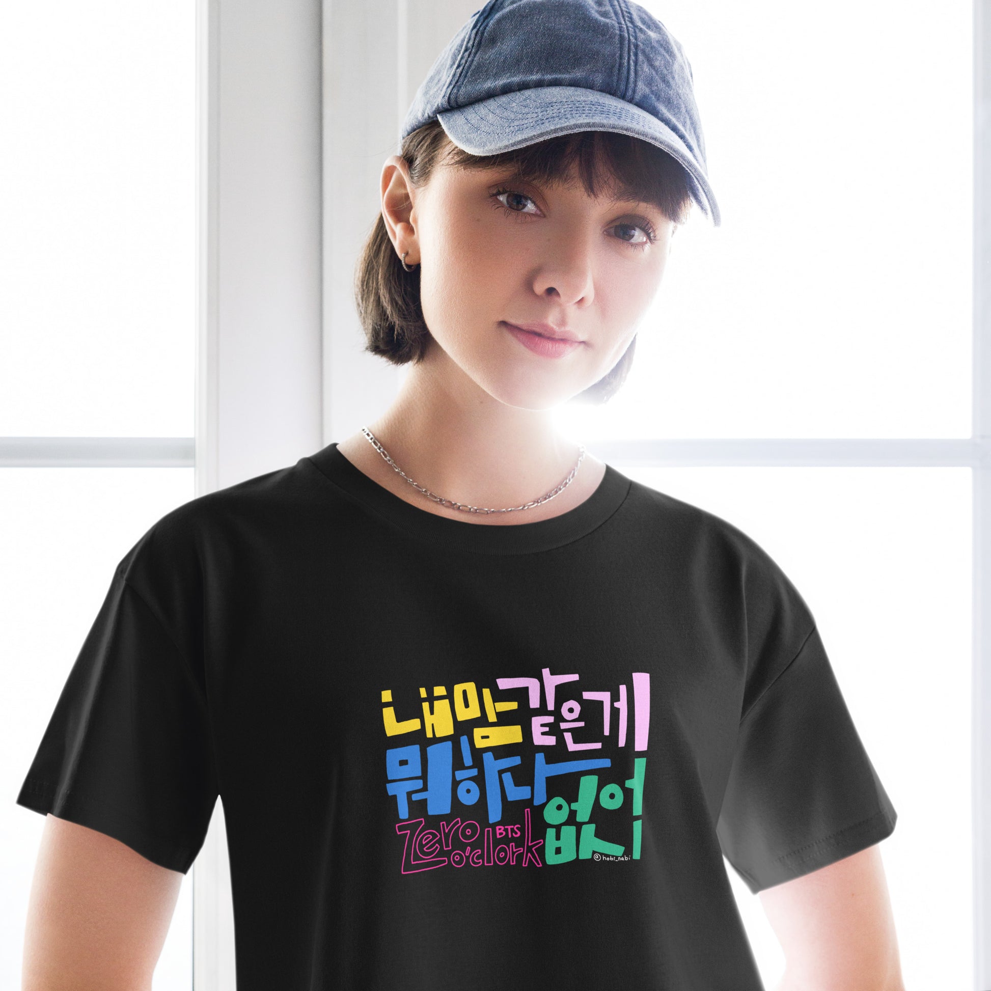 Handwritten Zero O'Clock Lyric Women’s Crop Top by Hobi Nabi | BTS-Inspired Korean Lettering 내 맘 같은게 뭐 하나 없어