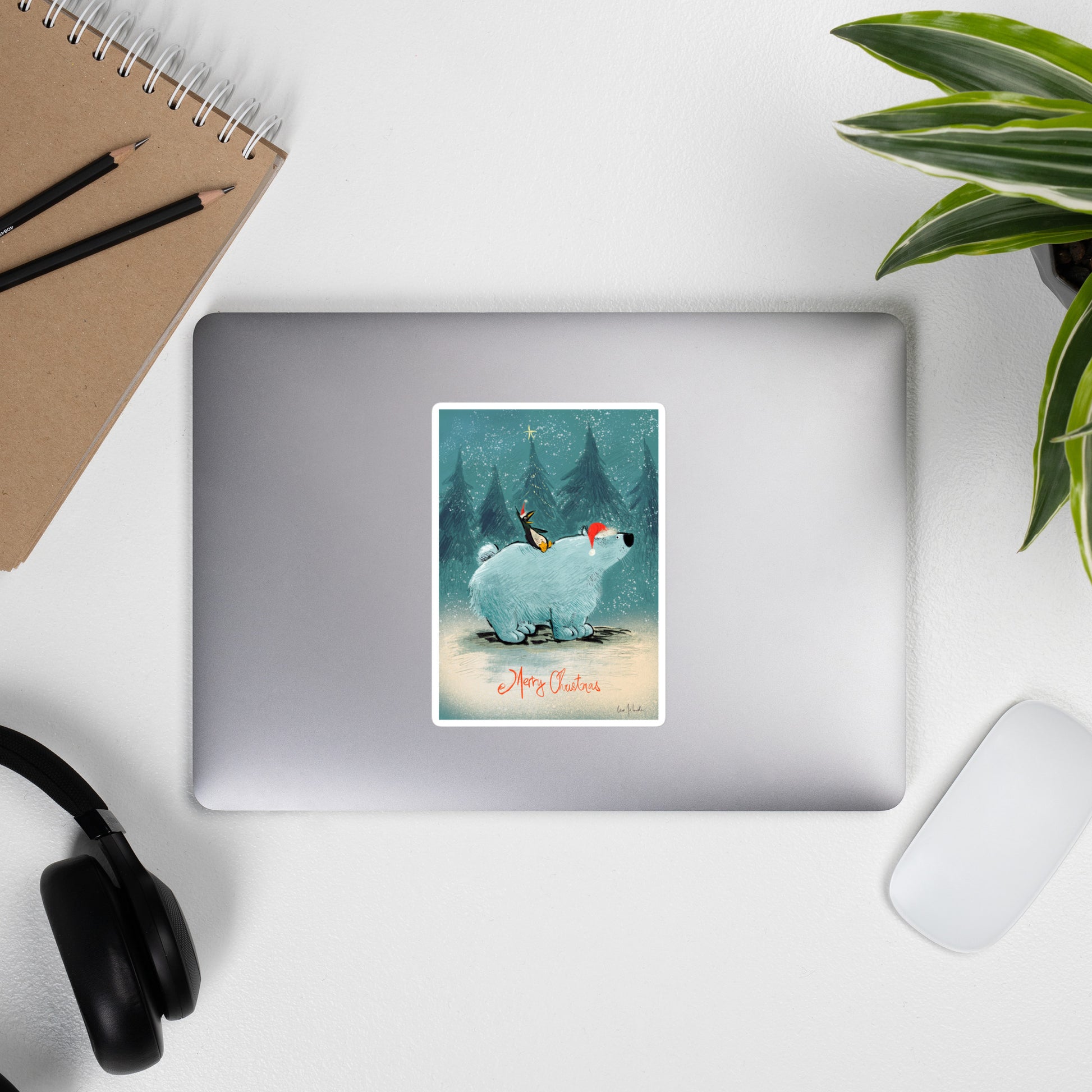 "Polar Bear and Penguin Bubble-Free Stickers - Hand-Drawn by Leo Matsuda | Festive Christmas Stickers"