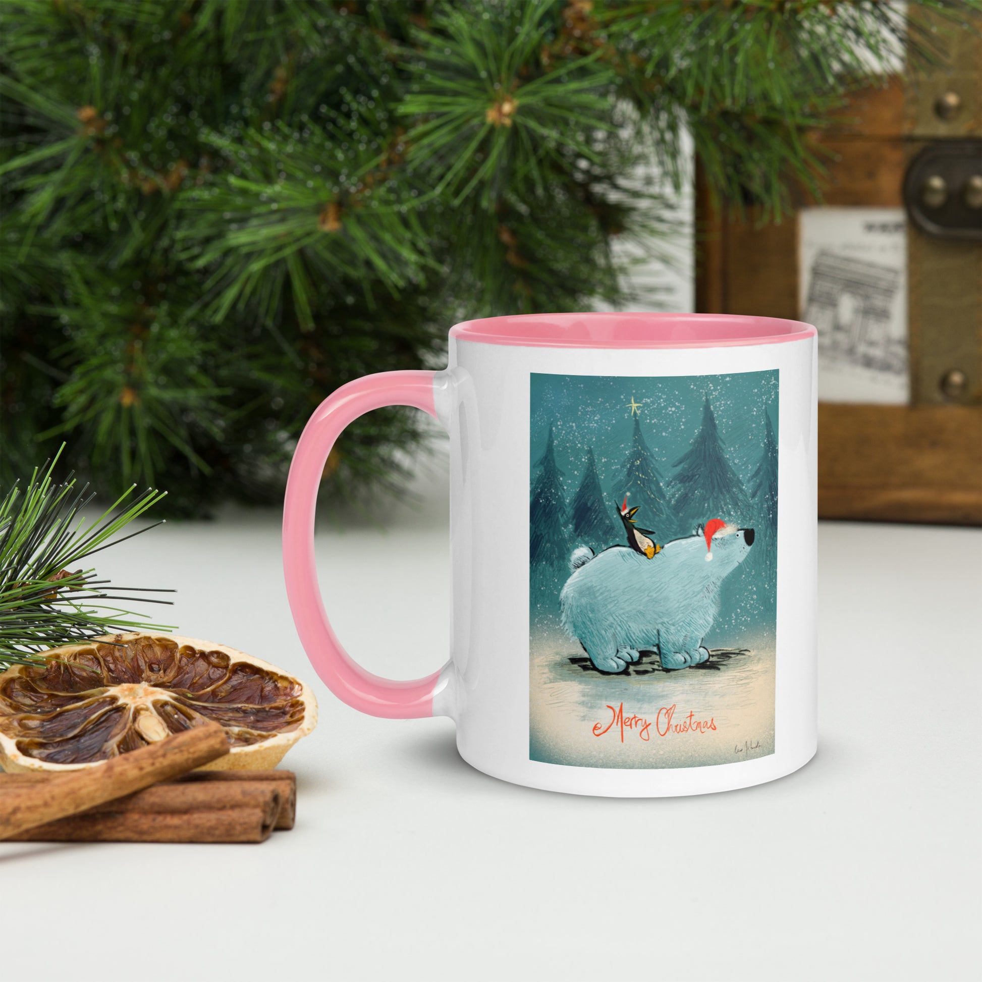 "Polar Bear and Penguin Mug with Color Inside - Hand-Drawn by Leo Matsuda | Festive Christmas Mug"
