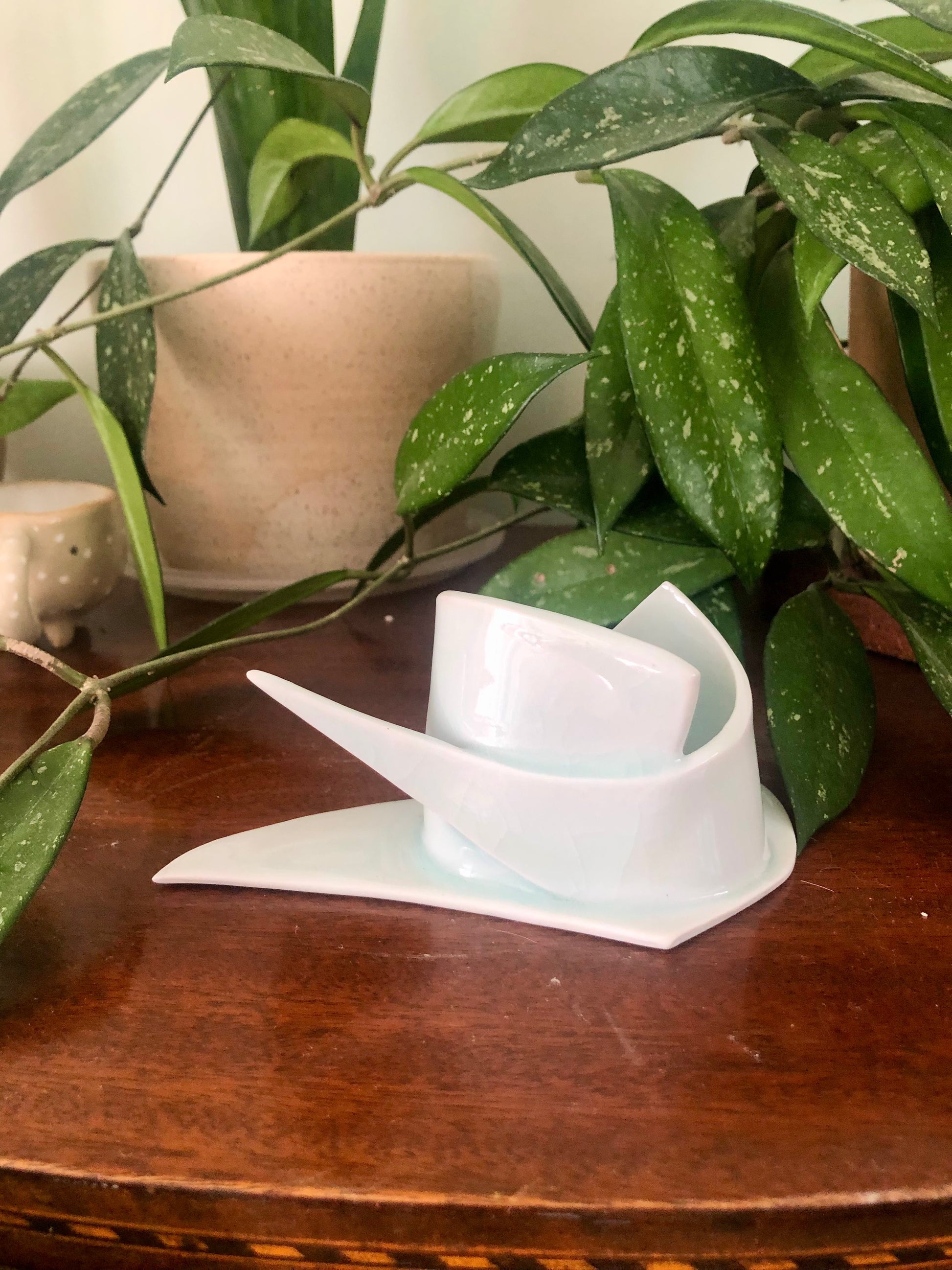 Inspired by the art of pastry making, this delicate handmade porcelain sculpture captures the soft, elegant curves of a croissant in a beautifully refined form. Each piece is meticulously crafted to evoke the sweetness and gentle nature of the baking process, offering a unique fusion of art and culinary inspiration. Handmade by Moon Pottery, this sculpture brings the charm and warmth of artisanal craftsmanship to your home, perfect for lovers of both art and baking.
