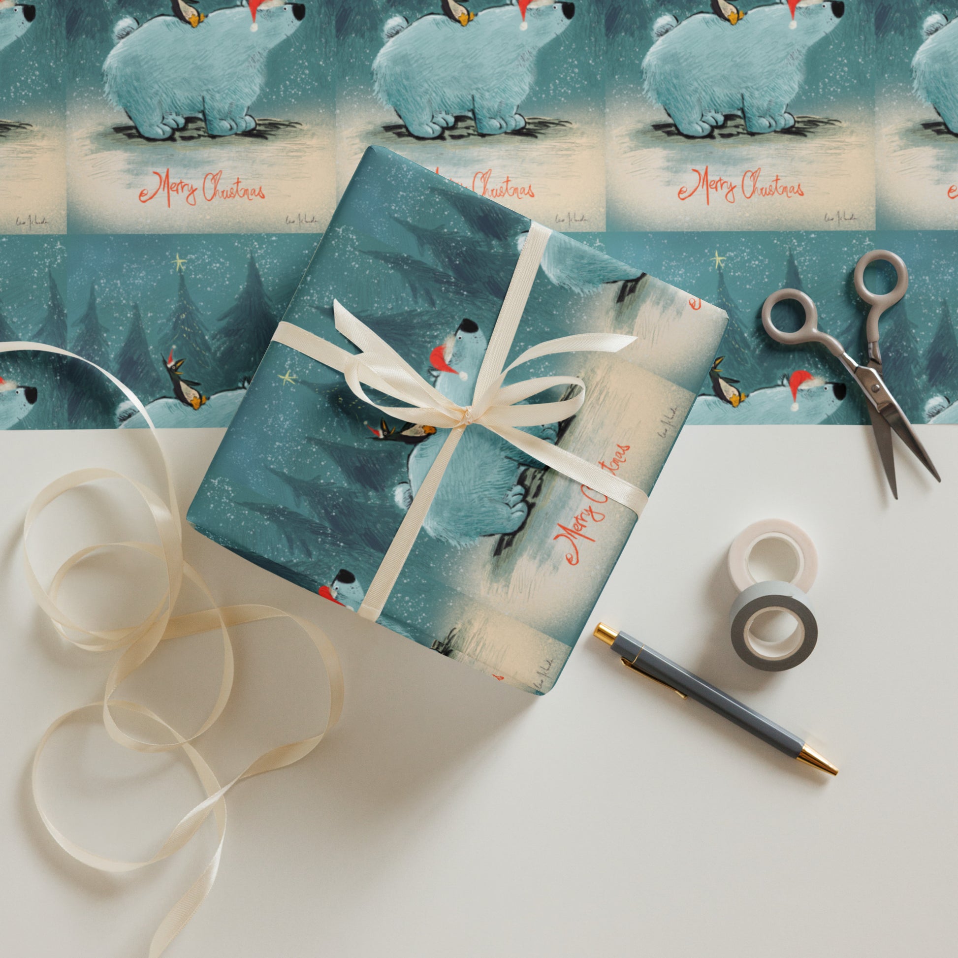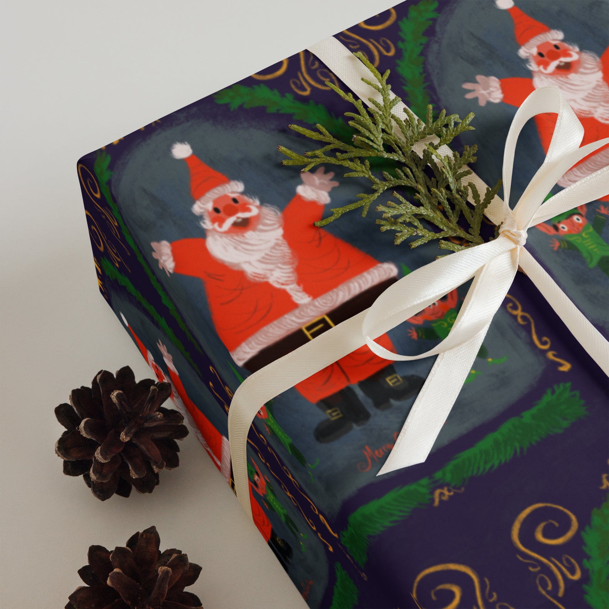 "Santa Wrapping Paper Sheets - Hand-Drawn by Leo Matsuda | Festive Christmas Gift Wrap"